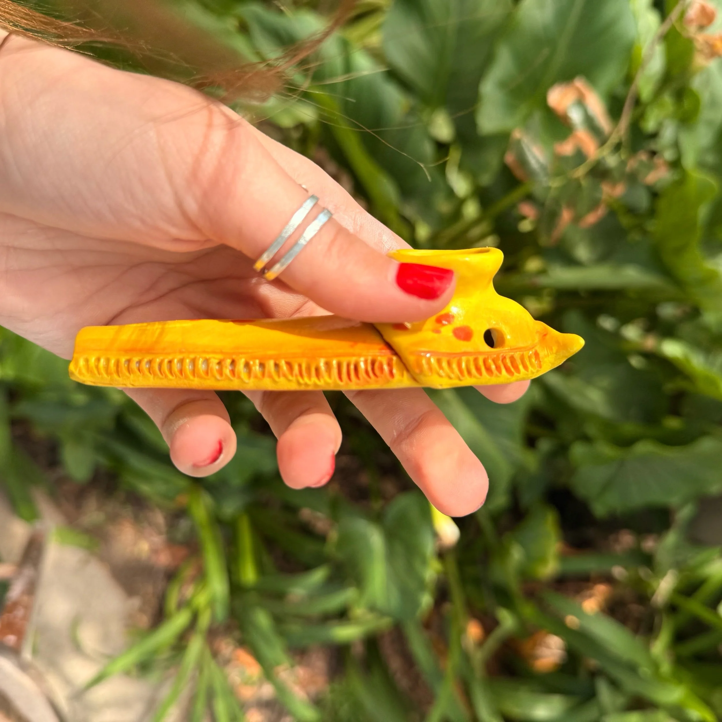 Each of my banana slug pipes are completely hand sculpted and hand painted! Clean with isopropyl alcohol and salt — each pipe has a carb hole to clear the piece after using.