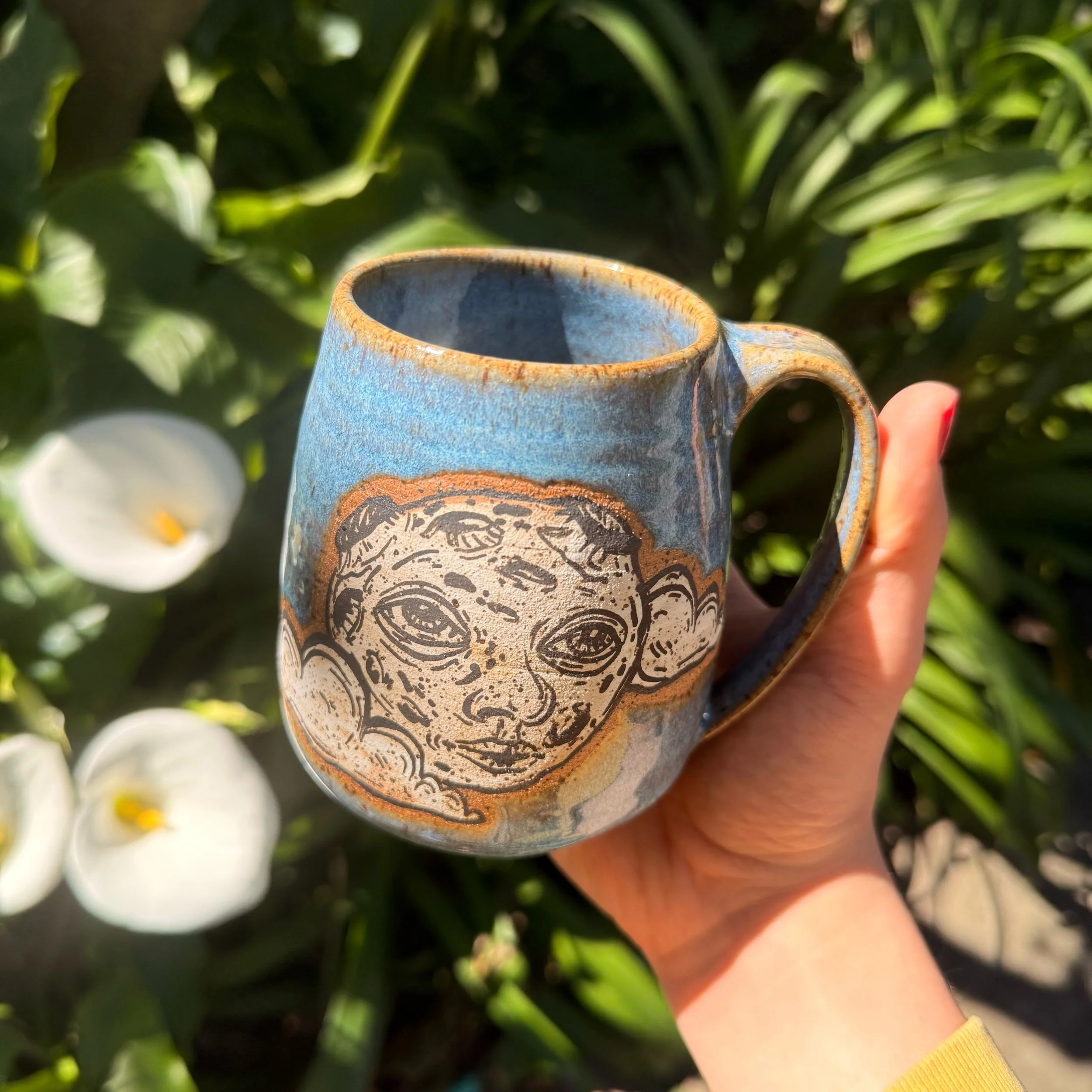 Shop › Moon Mug Image 1 of 4 Image 2 of 4 Image 3 of 4 Image 4 of 4 Moon Mug $55.00 coming soon! Speckled mug, hand painted with a moon and clouds! Microwave and dishwasher safe — holds 16 ounces. coming soon! Added! Speckled mug, hand painted with a moon and clouds! Microwave and dishwasher safe — holds 16 ounces. Reviews Reviewer Name Review Date Star Rating Description Posted on Etsy Product Show More