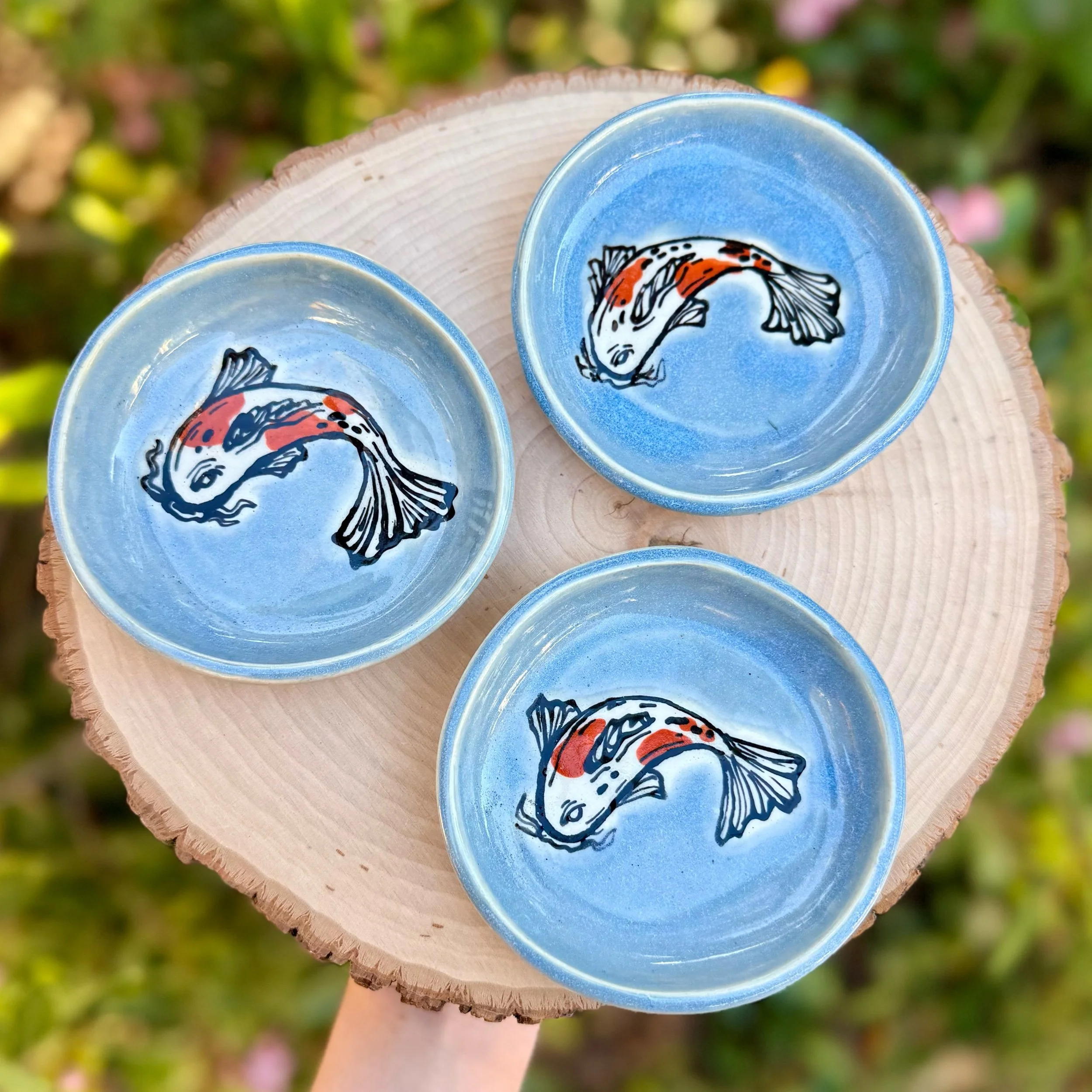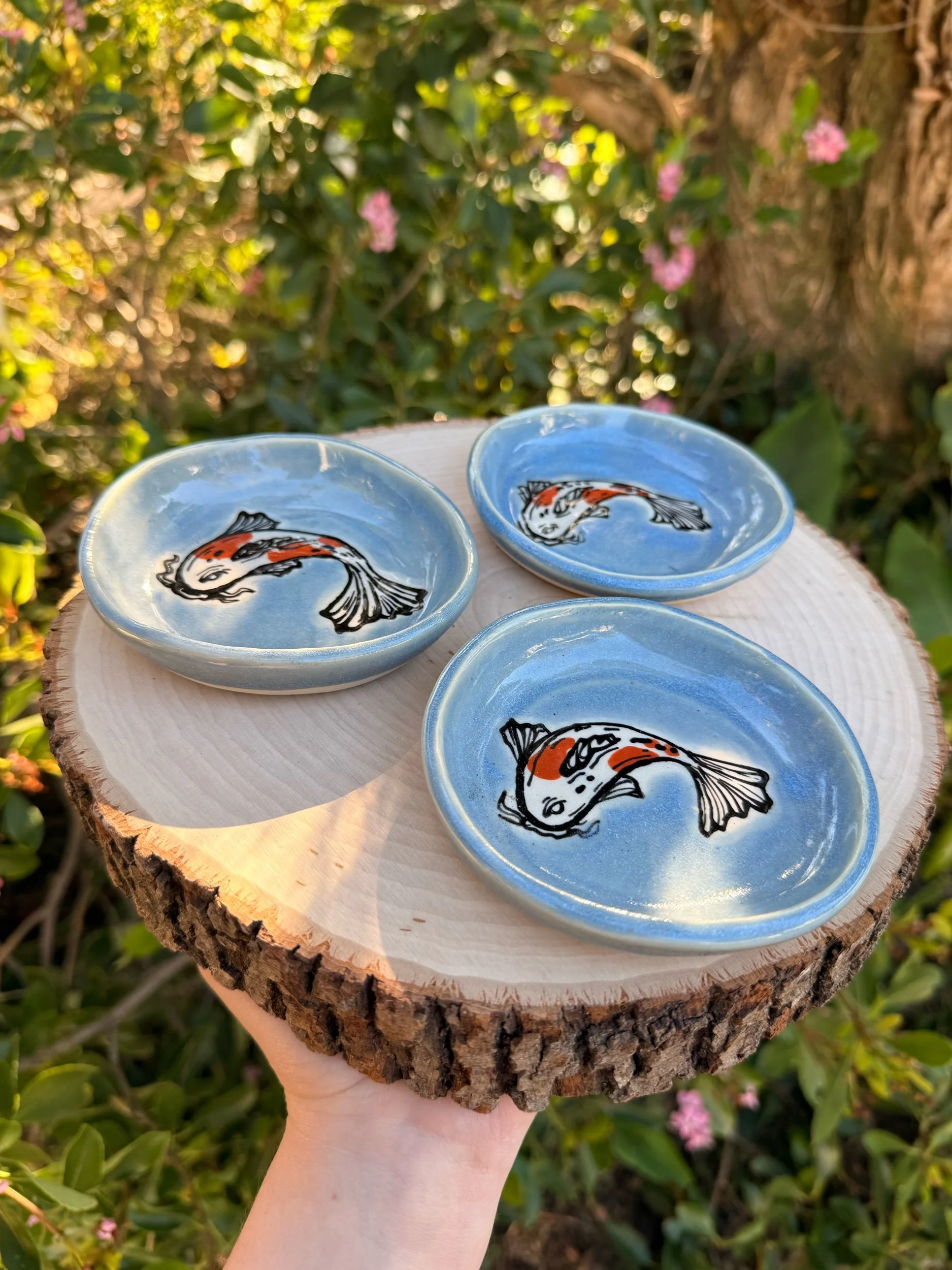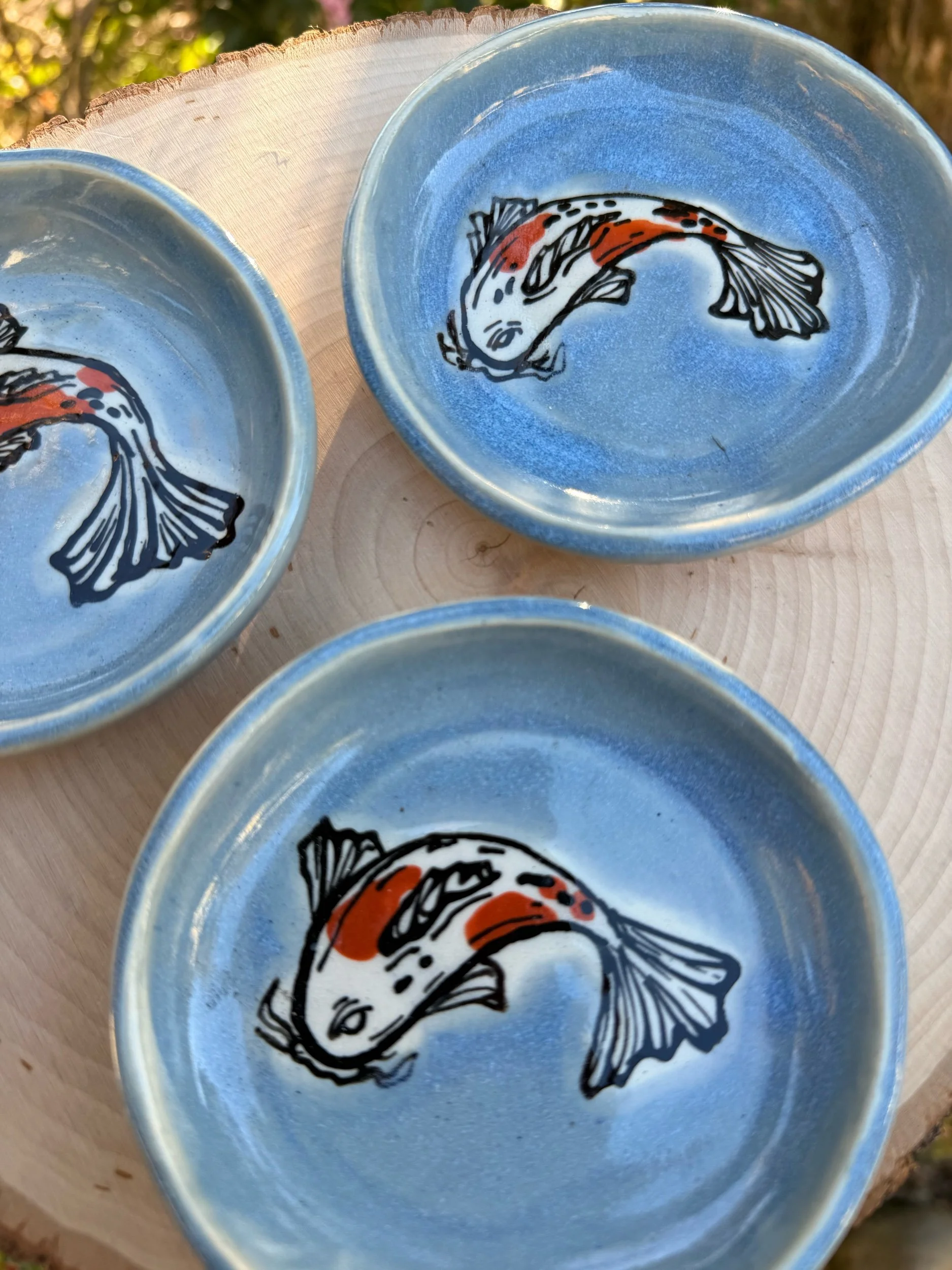 Shop › Koi Dishes Image 1 of 3 Image 2 of 3 Image 3 of 3 Koi Dishes $25.00 coming soon! Hand molded and hand painted koi dishes! About 4” wide — you’ll receive one of the dishes pictured! coming soon! Added! Hand molded and hand painted koi dishes! About 4” wide — you’ll receive one of the dishes pictured! Reviews Reviewer Name Review Date Star Rating Description Posted on Etsy Product Show More