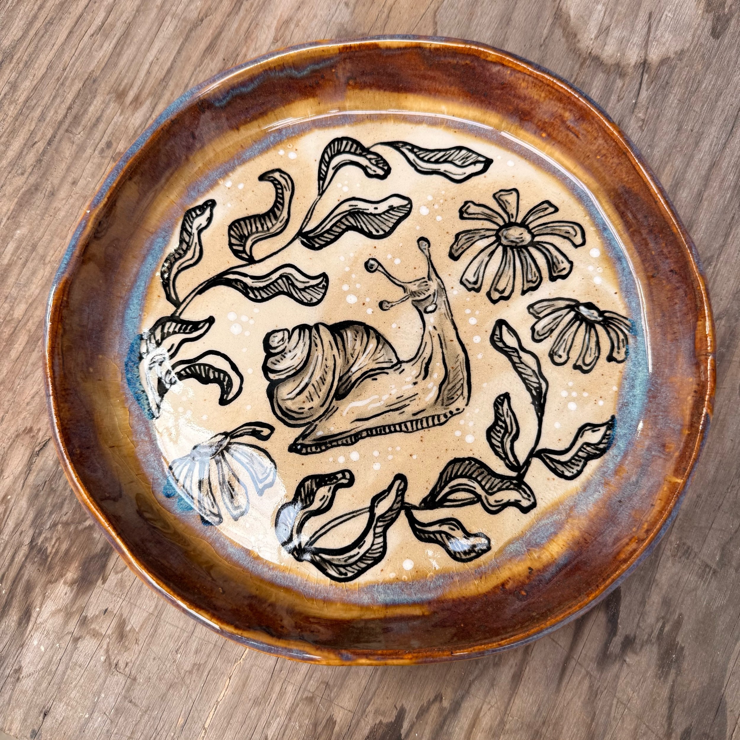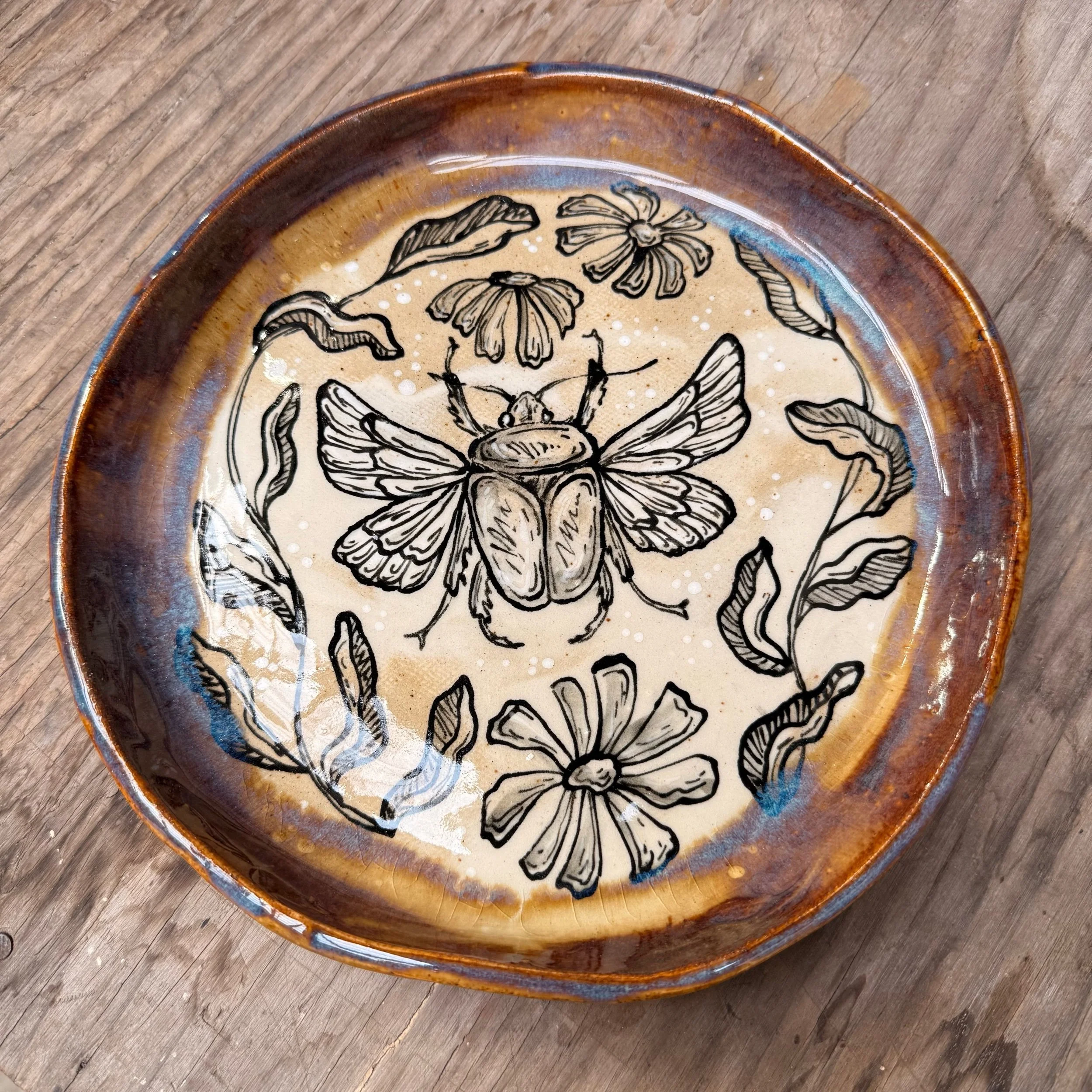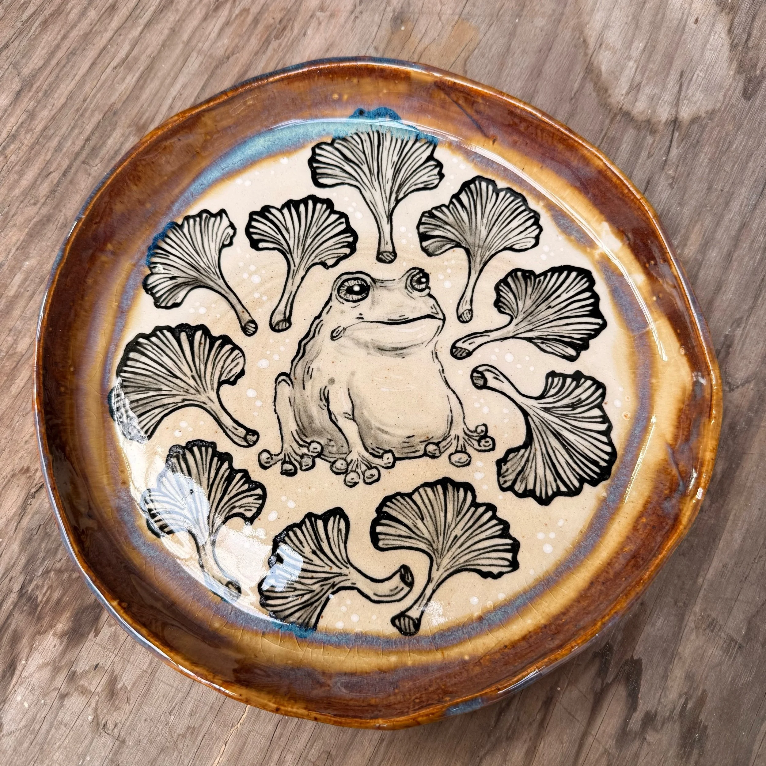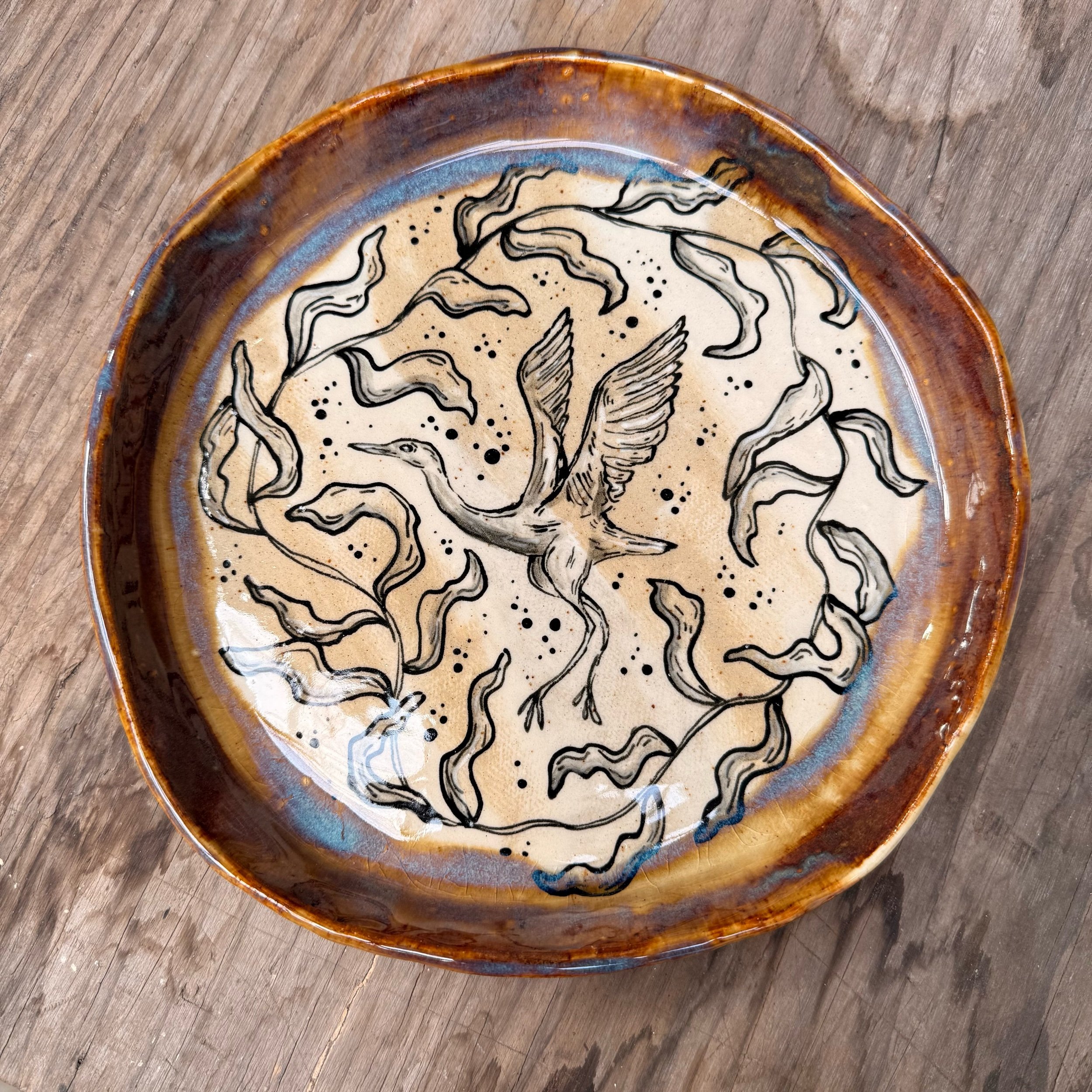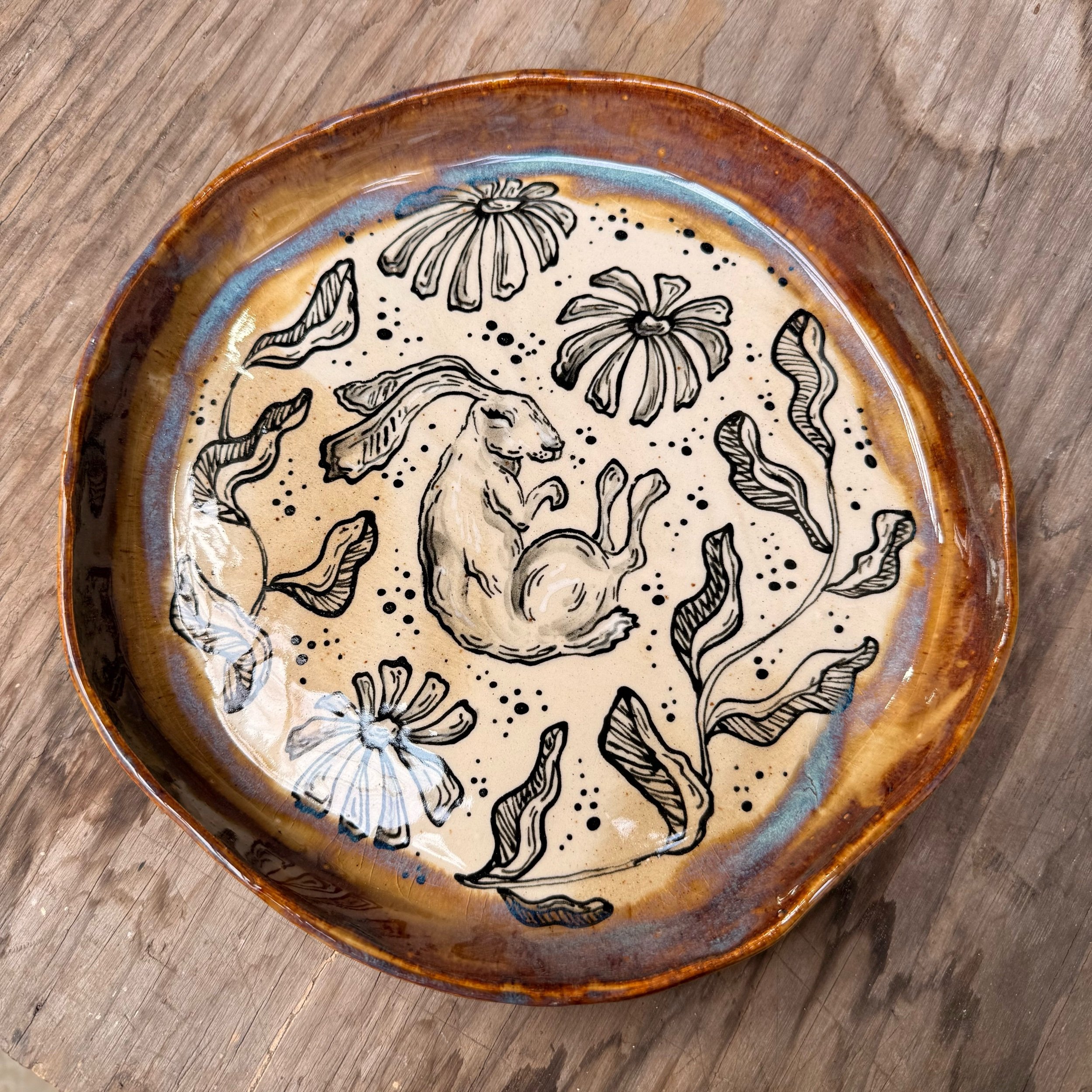 These plates are made from slabs and hand formed, giving them an organic, wavy shape. Each is hand painted with a woodland creature and botanical motif.